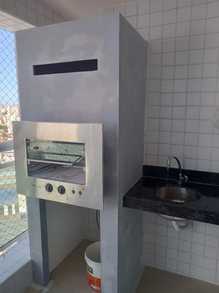 - Revestimento na área da churrasqueira com drywall na cor rosa