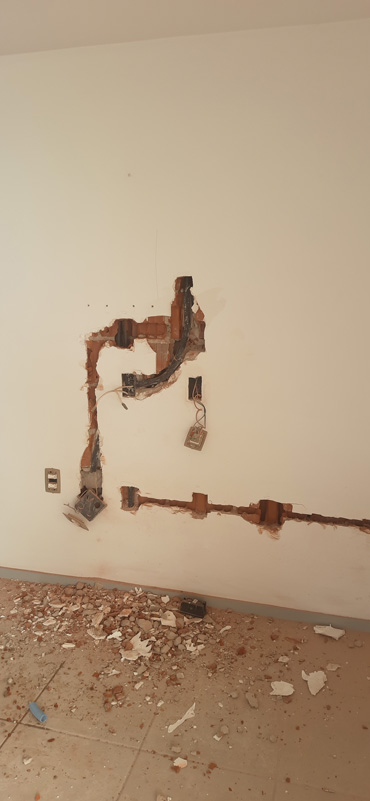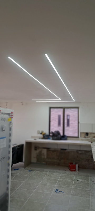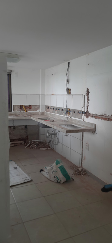 - Instalação elétrica para integração com dispositivos inteligentes. Foram instalados fiação, tomadas, interruptores, iluminação com plafon e fitas de led