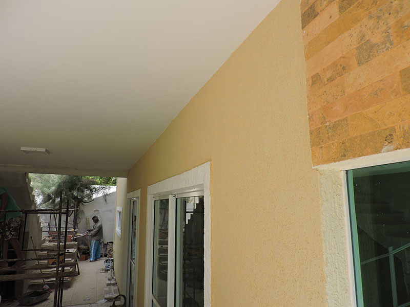 - Pintura de paredes e teto: retirada da textura antiga, revestimento com argamassa e, aplicação de grafiato nas paredes e, pintura de teto com látex