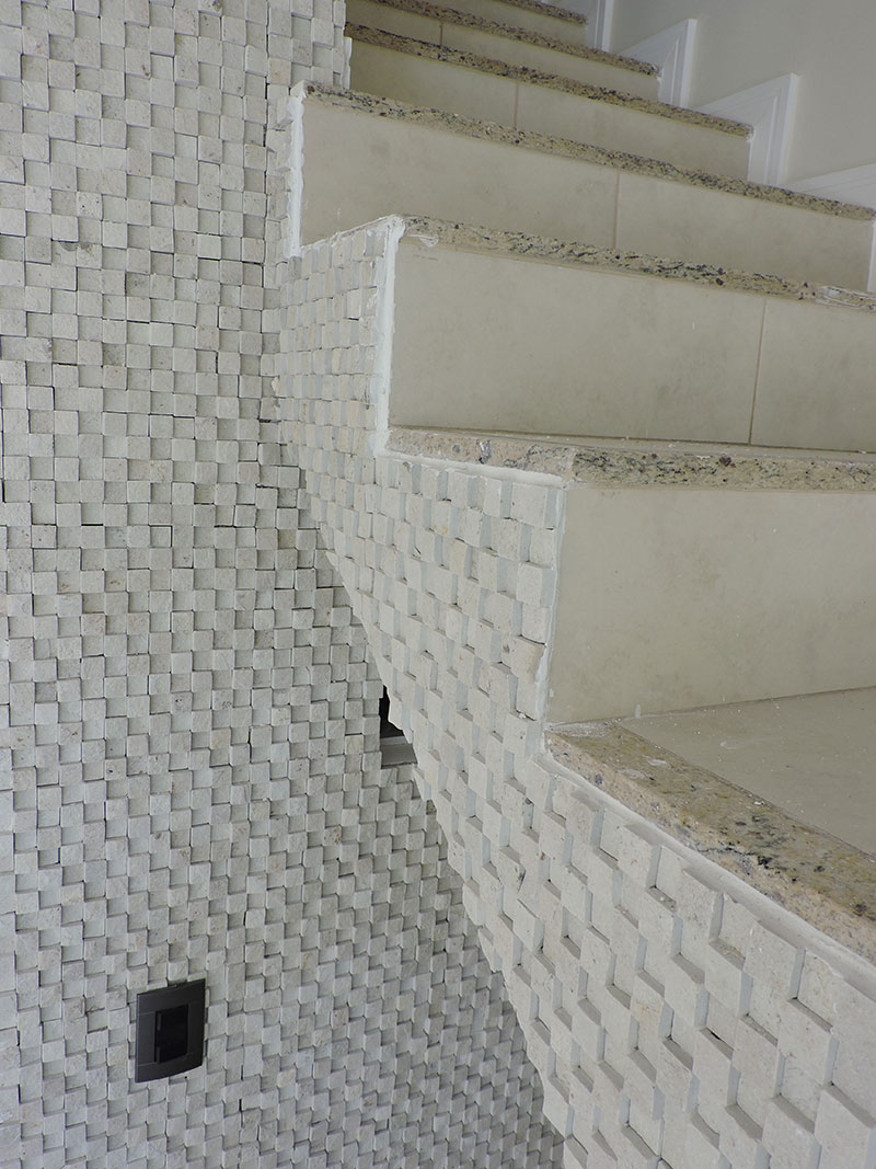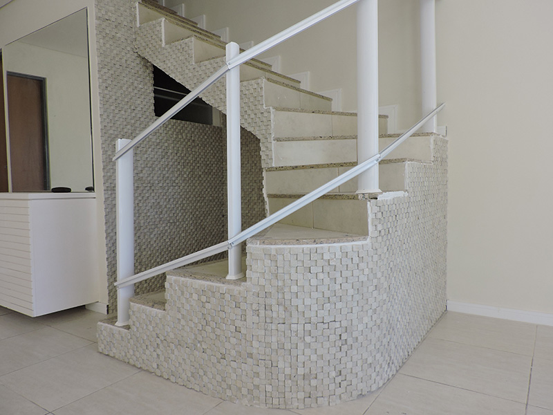 - Construção de uma escada com acesso ao terraço. Com revestimento em cerâmica e granito