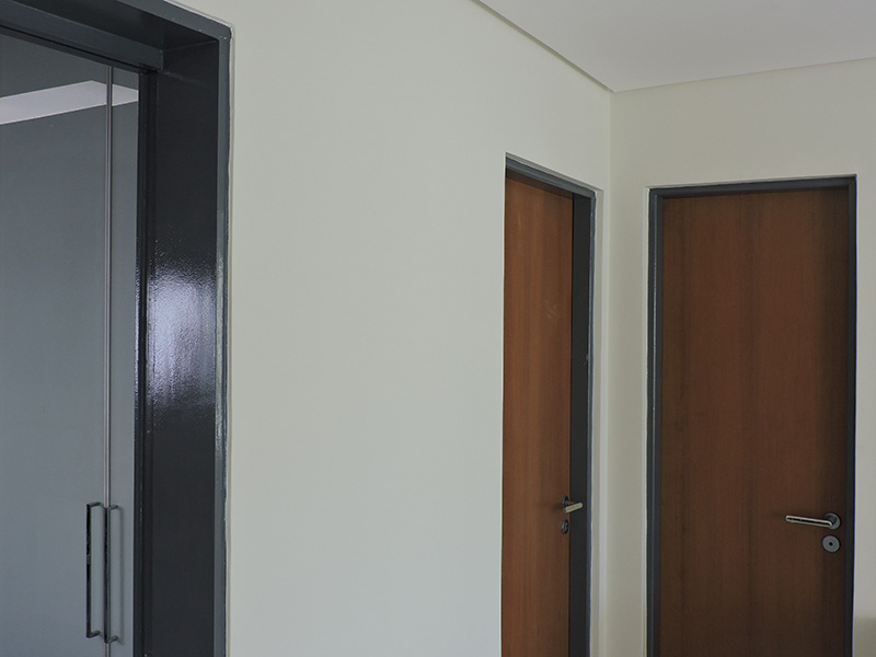 - Retirada de todas as portas internas e, colocação de novas, com pintura em esmalte e verniz