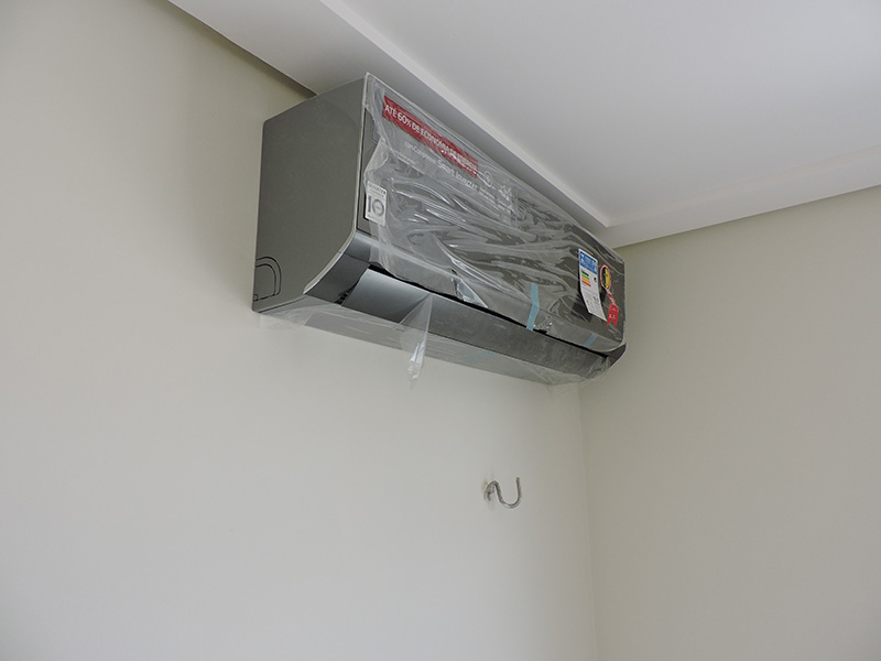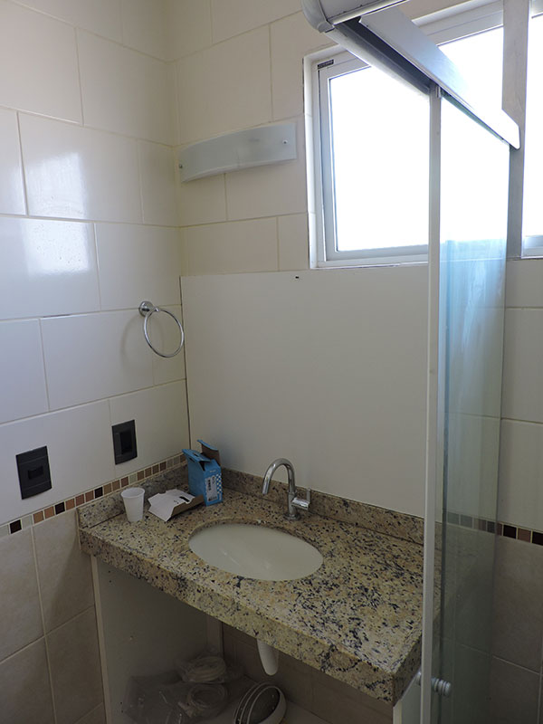 - Instalação de rodapé do tipo Santa Luzia. Corrimão em alumínio com pintura eletrostática e vidro. E ar-condicionado