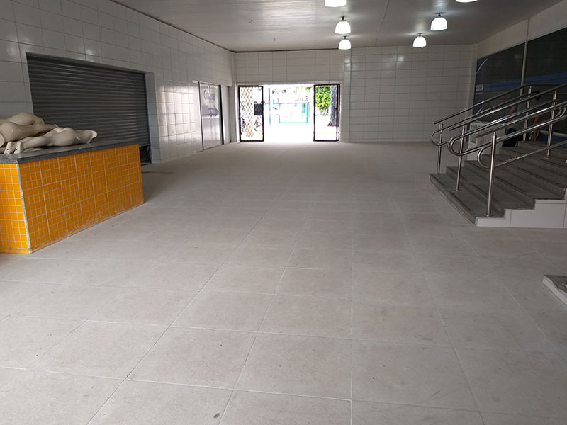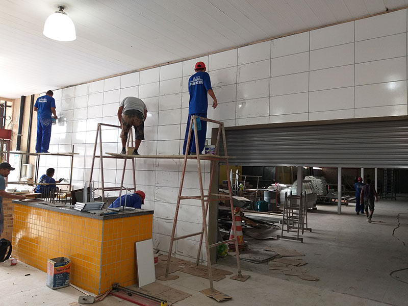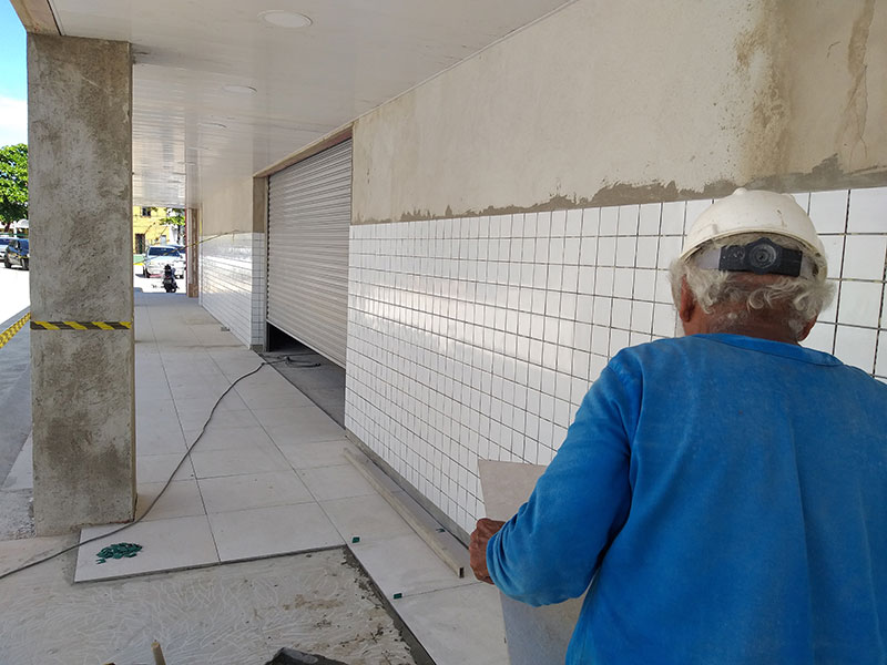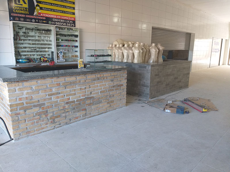 - Assentamento de cerâmica tipo tijolinho 10 x 20 nas lojas