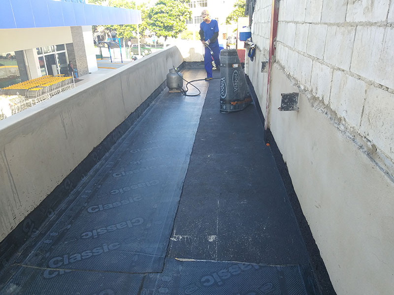 - Impermeabilização com manta asfáltica na laje