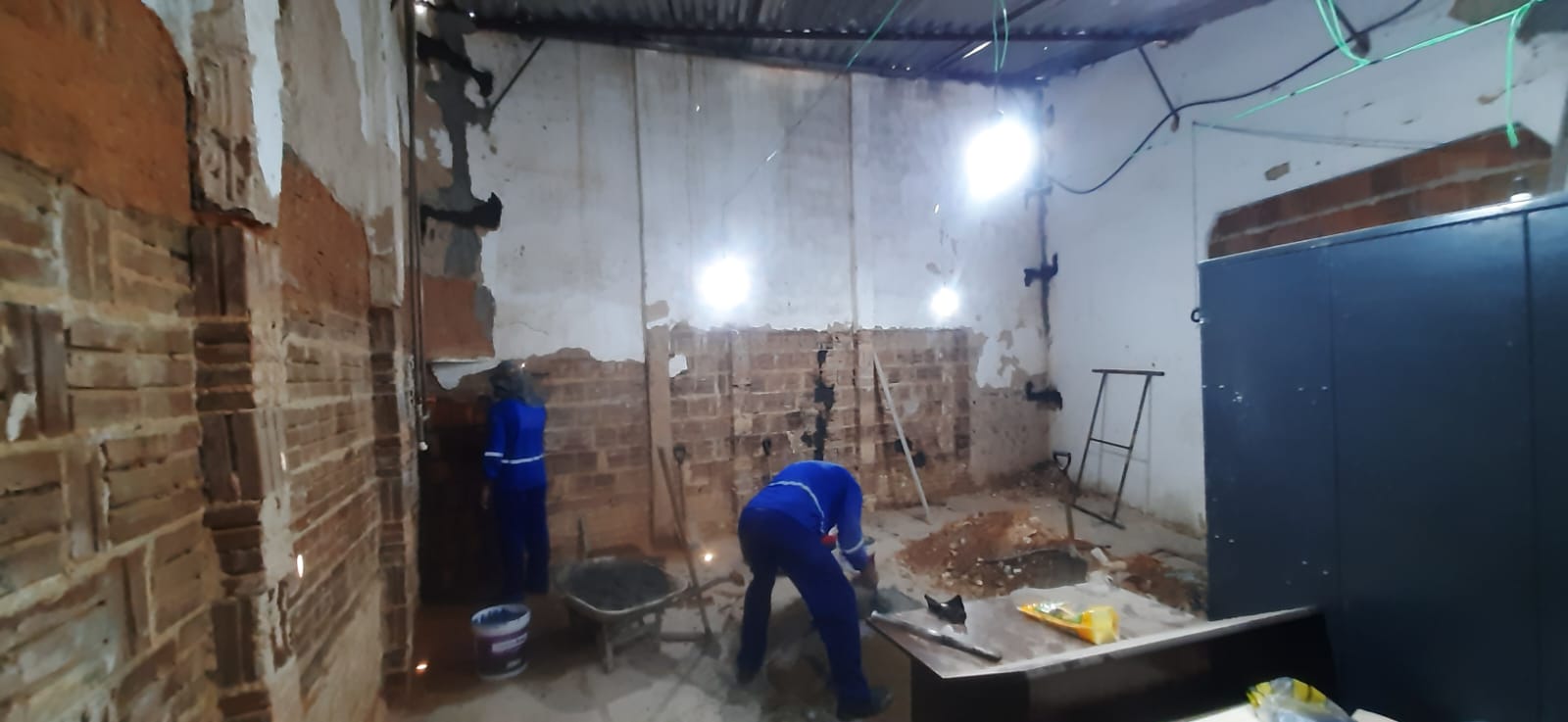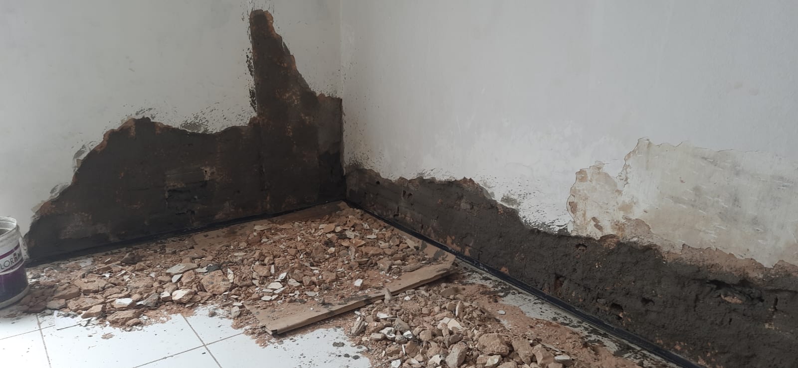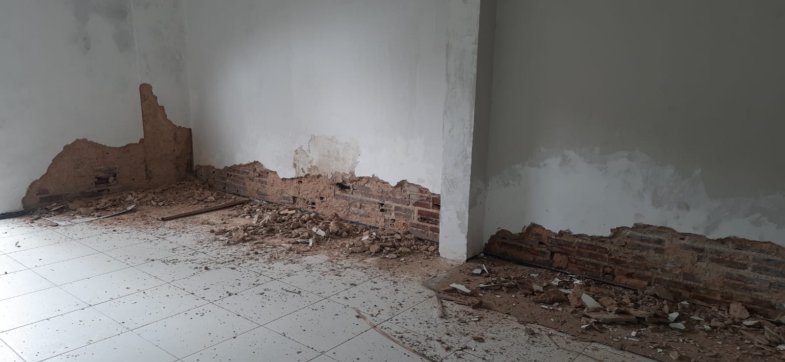 - Reforma nas paredes com retirada de trincas, e reboco danificado.
