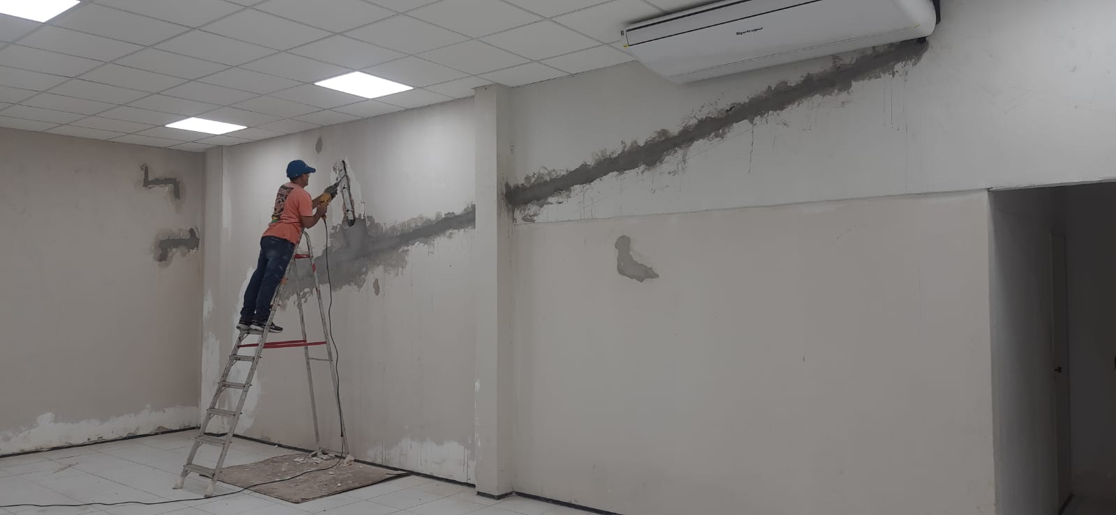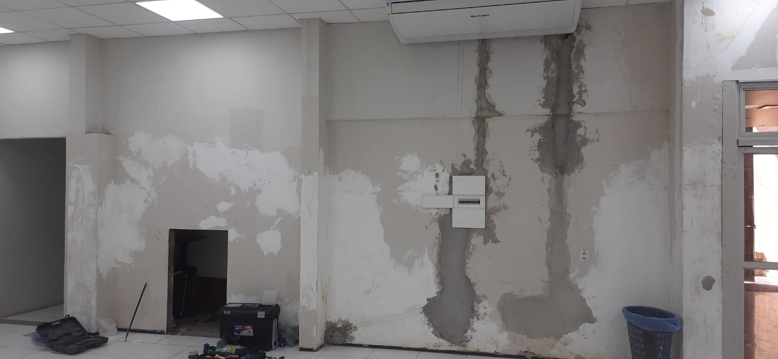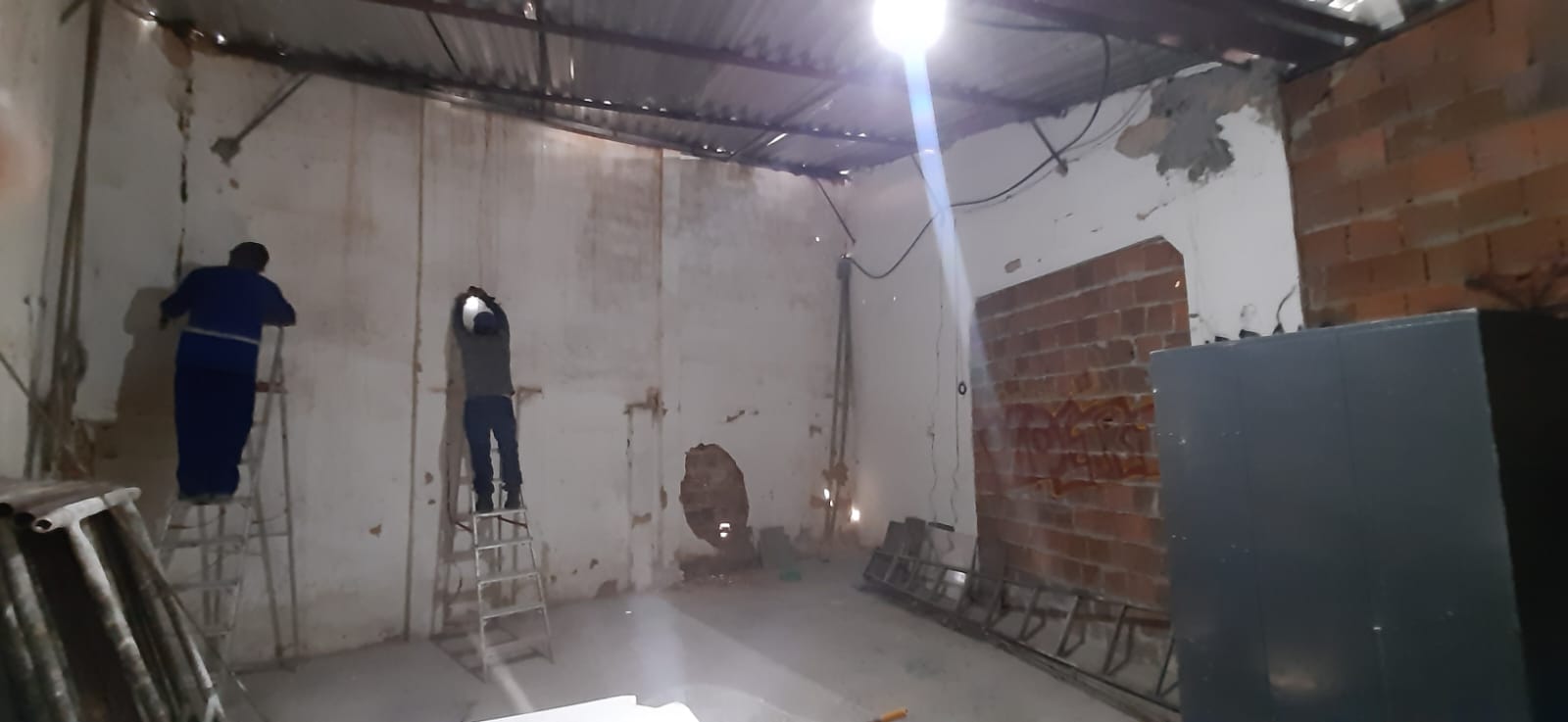 - Reforma nas paredes com retirada de trincas, e reboco danificado.