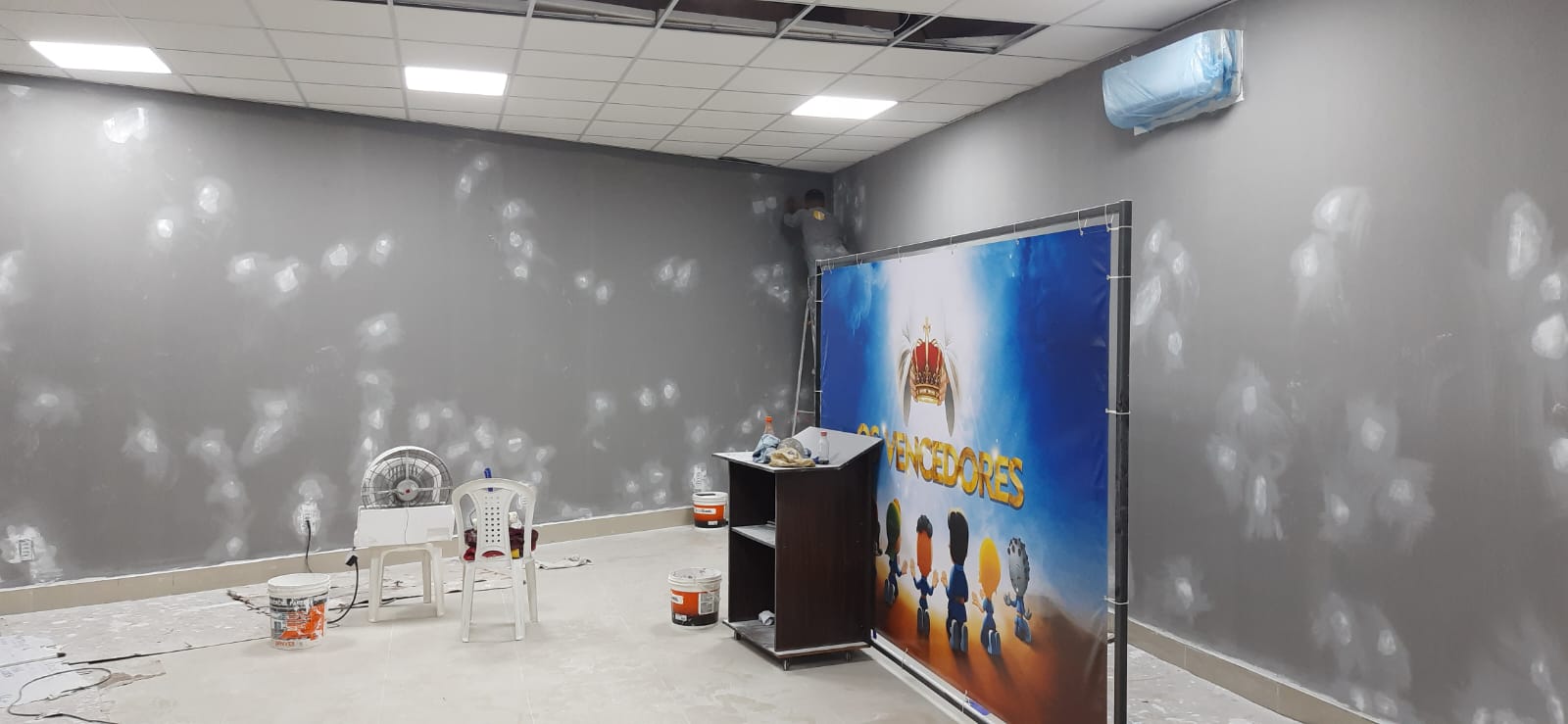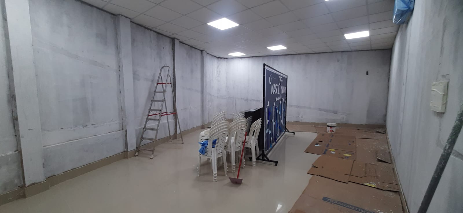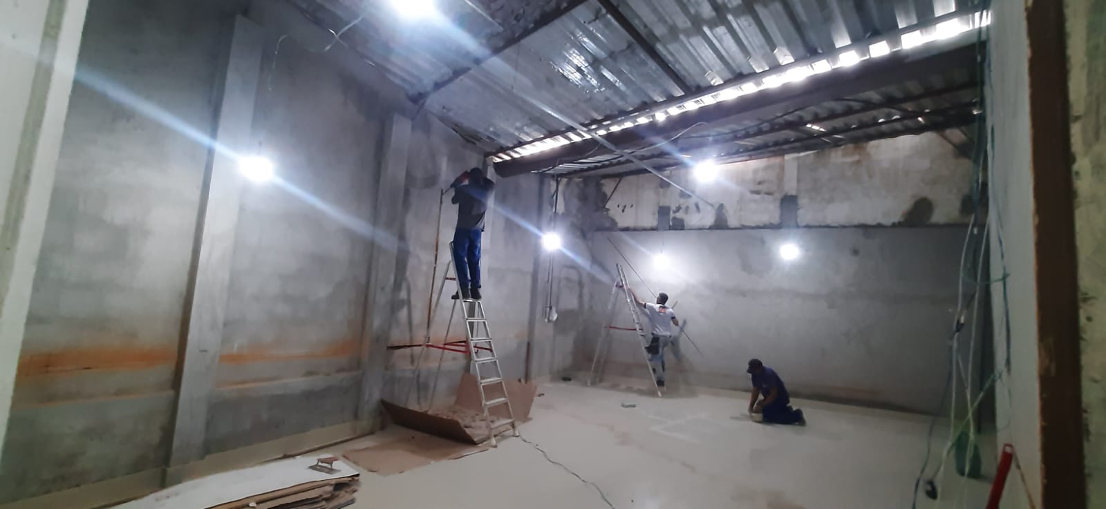 - Emassamento, lixamento e pintura das paredes.