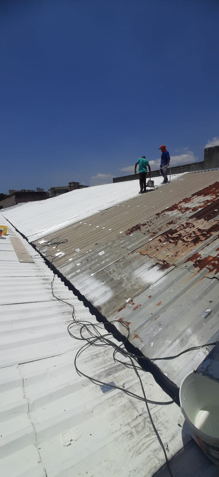 - Pintura do telhado com tinta emborrachada.