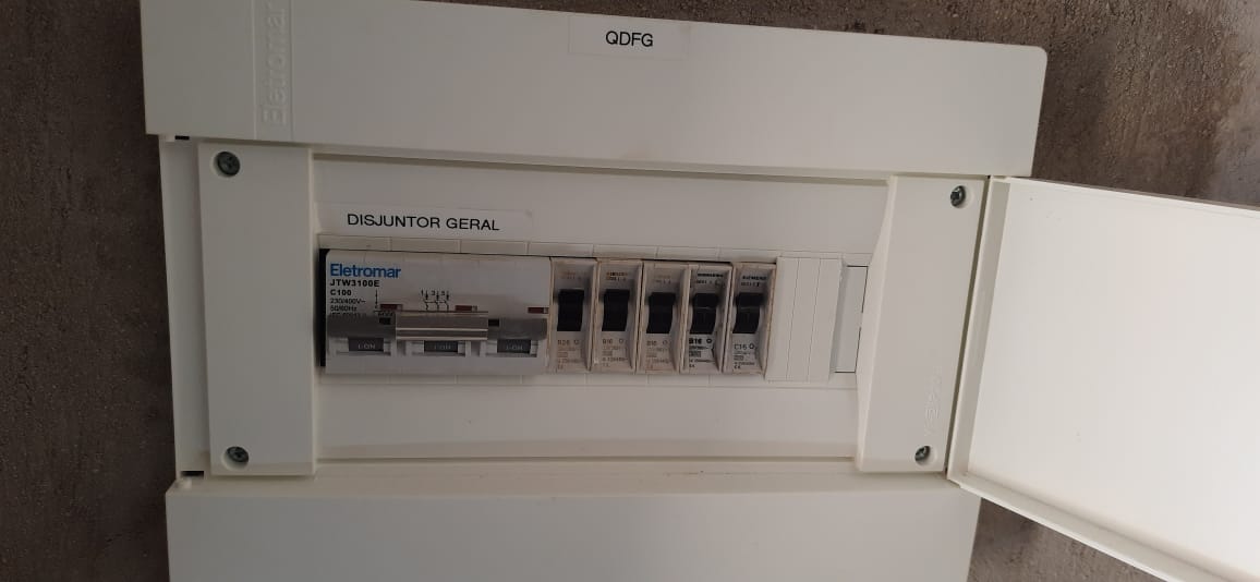 - Instalação elétrica completa, com quadro de distribuição e dijuntores, com identificação de cada circuito.