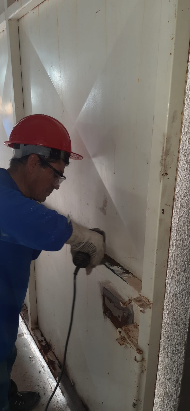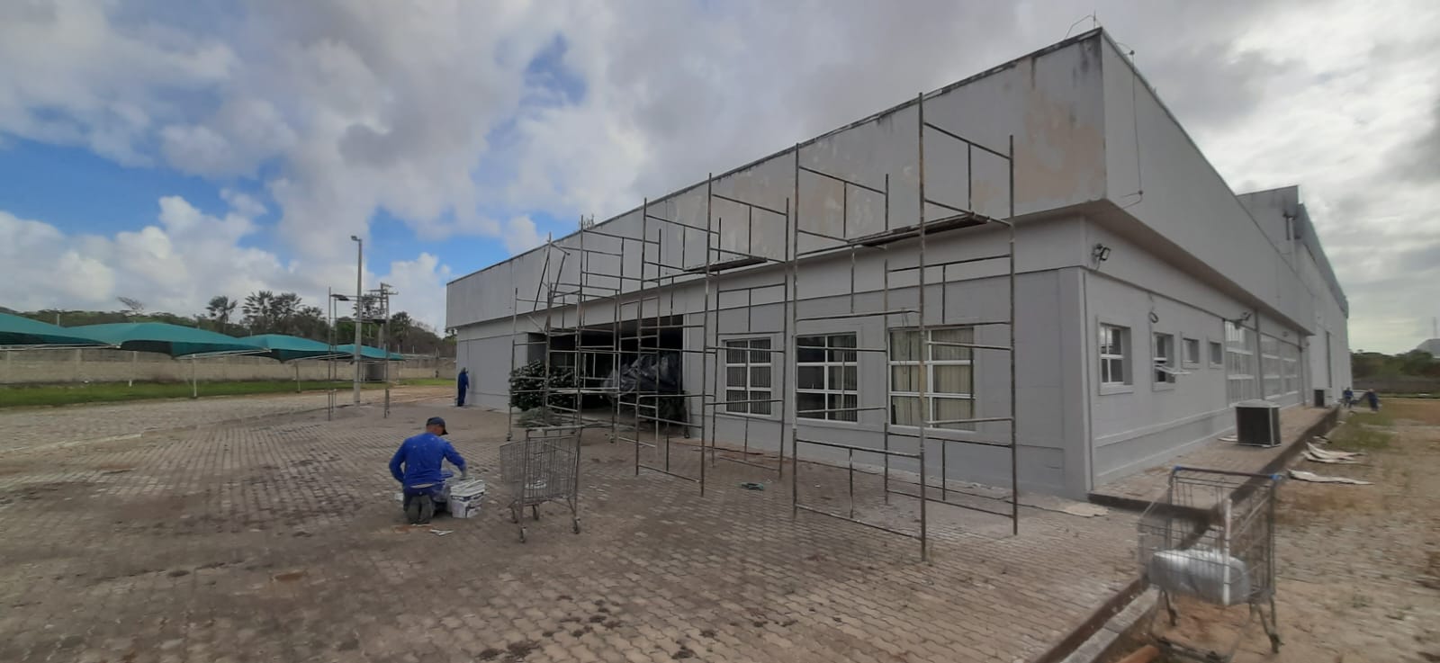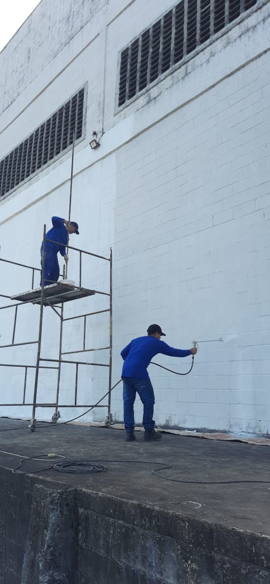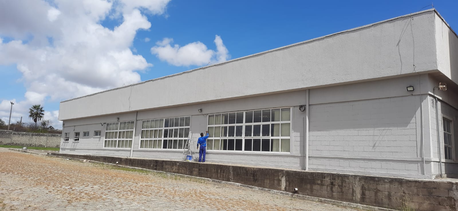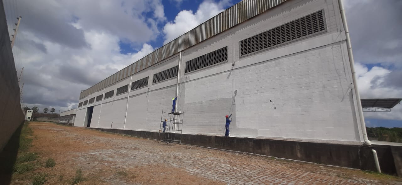 Foi realizada a reforma na pintura de galpão, localizado no bairro Ancuri, na cidade de Fortaleza, Ceará.